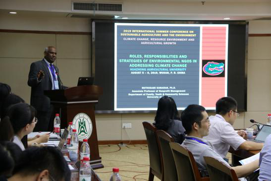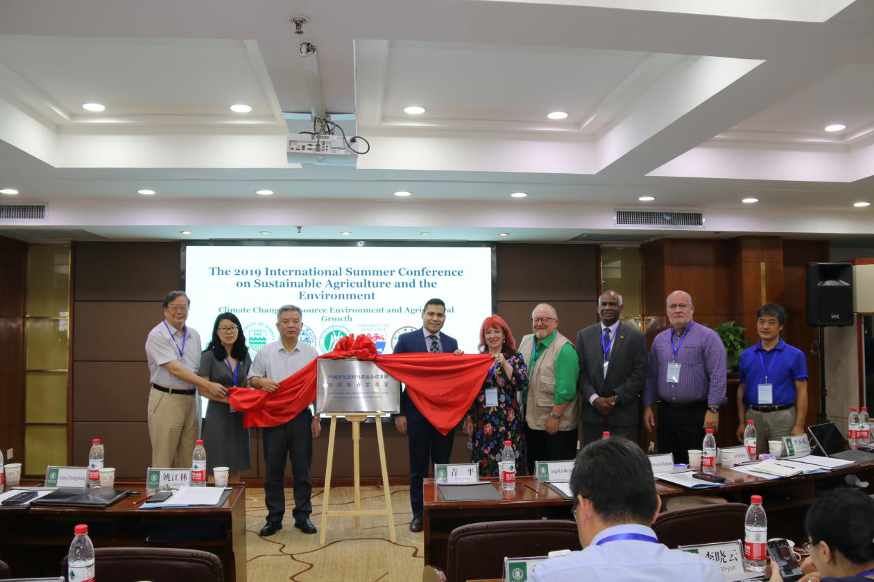 8月6日,2019“气候变化、资源环境与农业增长”国际会议(The 2019 International Summer Conference on Sustainable Agriculture and the Environment: Climate Chang, Resource Environment and Agricultural Growth)暨气候变化应对与农业永续发展国际联合实验室揭牌仪式在国际学术交流中心举行。会议共邀请来自美国佛罗里达大学、英国纽卡斯尔大学、加拿大阿尔伯塔大学和国立台北大学等共建单位的7位专家,学校党委副书记、副校长姚江林,副校长青平及437437必赢国际网址领导班子成员,学院部分师生参加了会议。