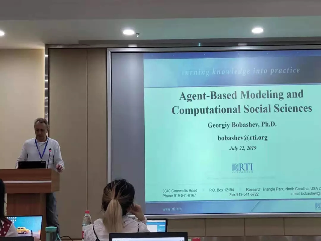 随后,主讲人Georgiy Bobashev老师讲授了Agent-Based Modeling and Computational Social Sciences的导入课,他以NetLogo模型库里的segregation model为例让学员对计算机仿真和编程工具有了初步的认识
