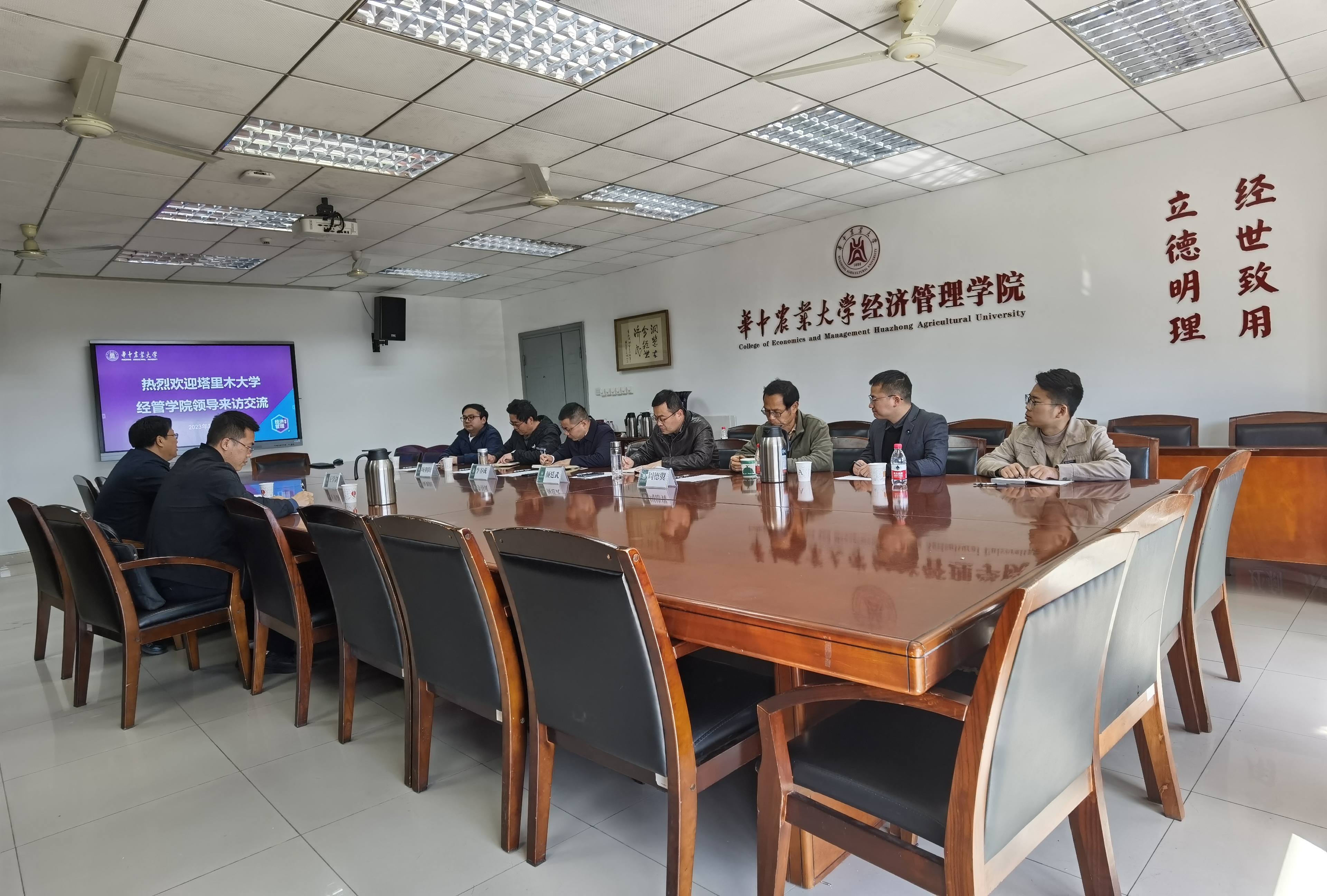 3月13日下午,塔里木大学经济与管理学院院长王学剑、工商管理系副主任马信春来我们调研并座谈交流。我院院长李谷成,副院长颜廷武、项朝阳,