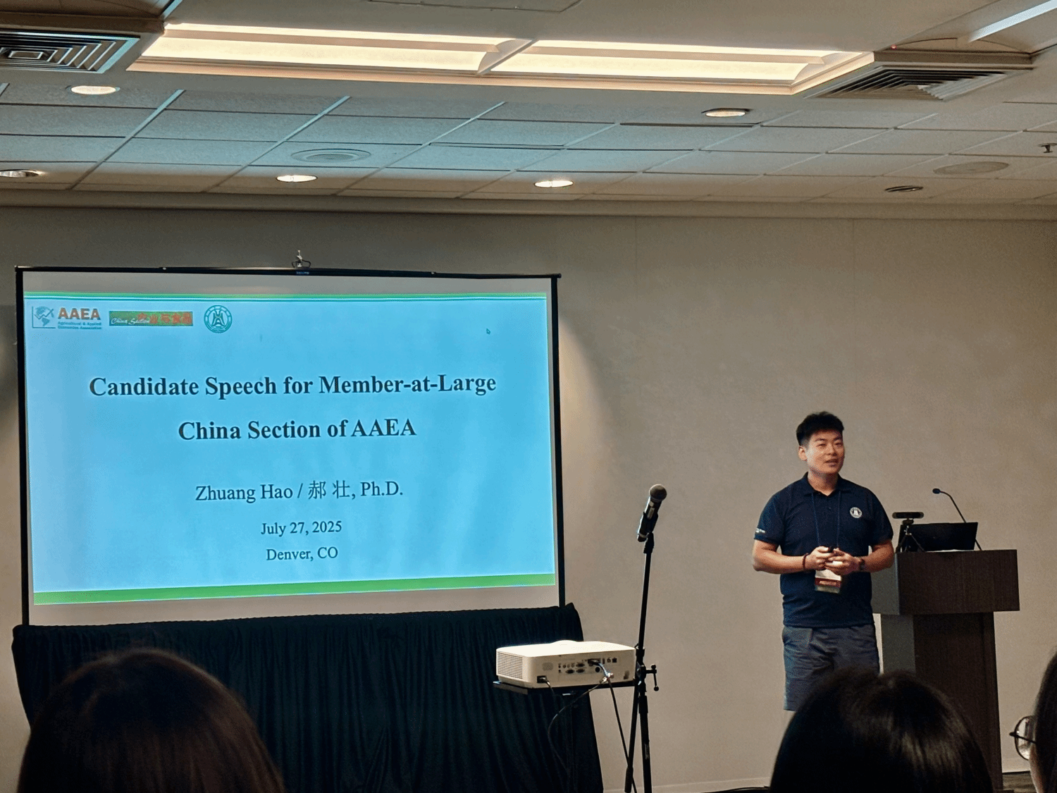 7月27日至30日,美国农业与应用经济学会(AAEA,Agricultural & Applied Economics Association)年会在美国丹佛举行。我们副教授郝晶辉、李凡、刘笑天、郝壮及多名博士研究生赴美参会并作学术报告,郝壮当选为AAEA中国分会(AAEA China Section)常务理事(Member-at-Large)。