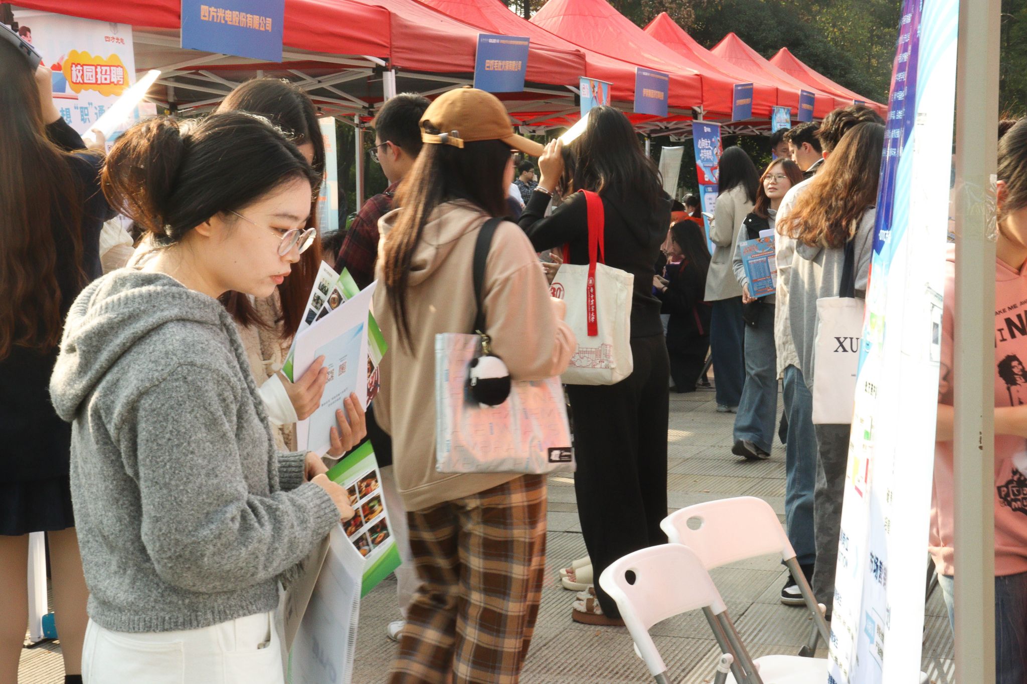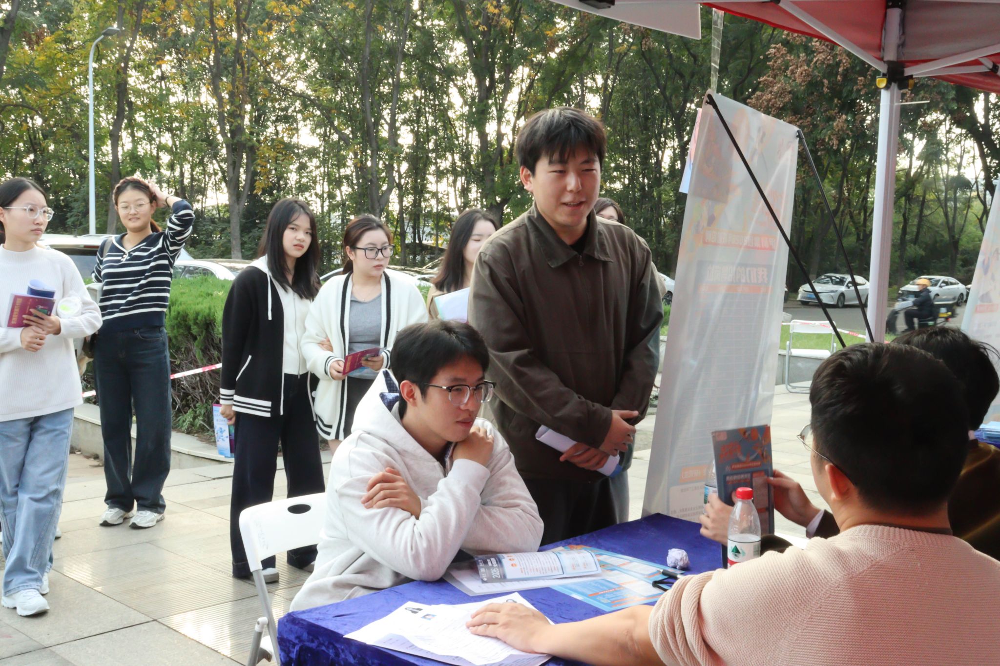 南湖新闻网讯(通讯员 杨梓蔚 吴娇)11月15日下午,437ccm·必赢国际2026届文管类生涯规划展暨秋季专场招聘会在人文社科楼附楼外广场举行。活动旨在精准对接文管类学生多元化发展需求,搭建毕业生与用人单位双向选择平台,由本科生院、研究生院、437437必赢国际网址联合主办,文法学院、外国语学院、公共管理学院、华农林肯学院协办,吸引了三十余家企业及近千名学生参与。